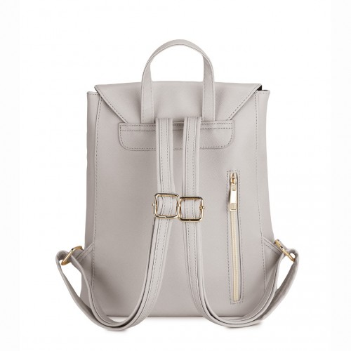 BPM2427 – Miss Lulu Stylish Faux Leather Backpack Secure Daypack with Magnetic Snap Closure Fashionable PU Leather Travel Bag – Light Grey