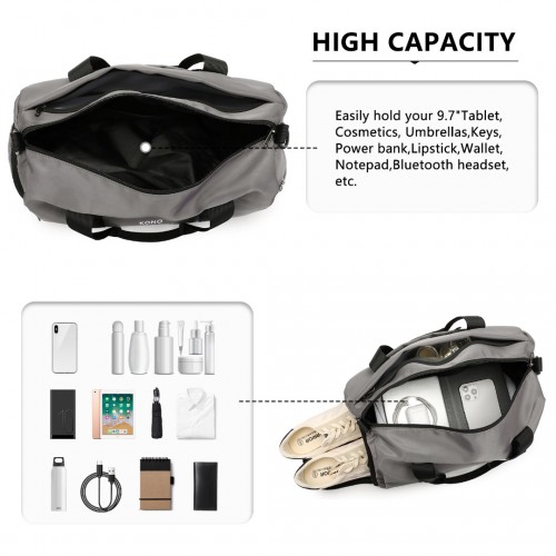 EA2305 – Kono Waterproof Duffel Bag Lightweight Sports Gym Bag With Shoes Compartment – Grey
