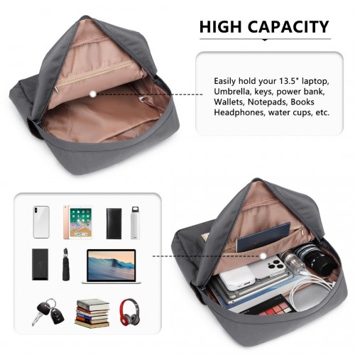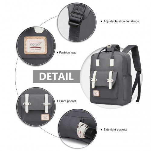 EB2211 – Kono Casual Daypack Lightweight Backpack Travel Bag – Grey