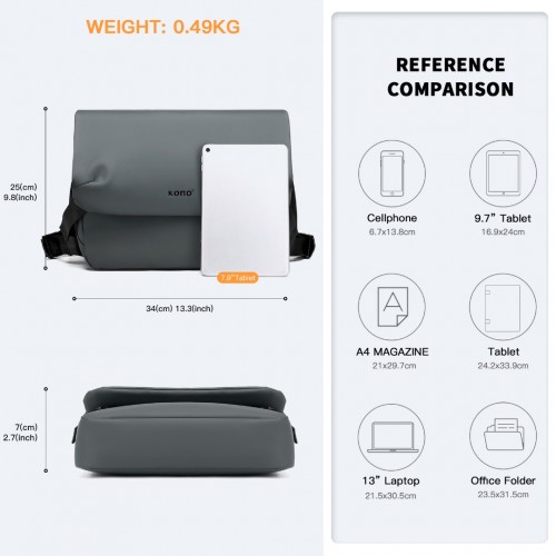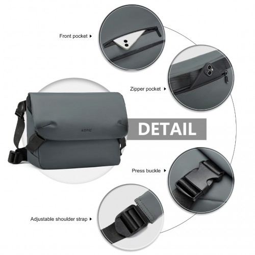 The front flap boasts a sleek silk-screened “KONO” logo, and the bag can be worn across the chest or slung over the shoulder for a casual look.
