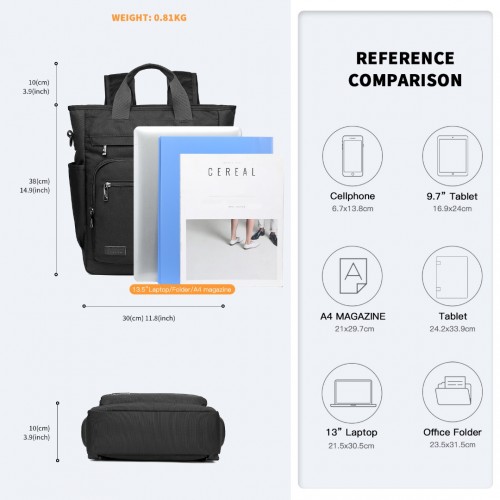 30cm(L) * 10cm(W) * 38cm(H) / 11.8″(L) * 3.9″(W) * 14.9″(H); 0.81kg (all measurements are external, internal measurements may differ 1-2cm).