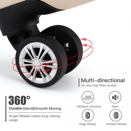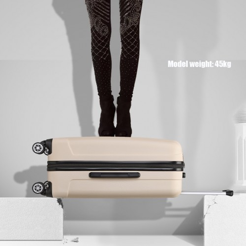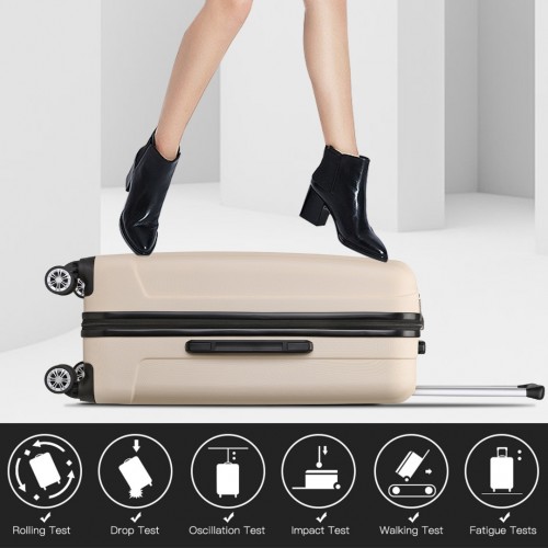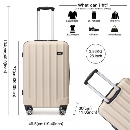 K1773-1L – Kono 19/24/28 Inch 3 Piece Set Striped ABS Hard Shell Luggage with 360-Degree Spinner Wheels – Beige