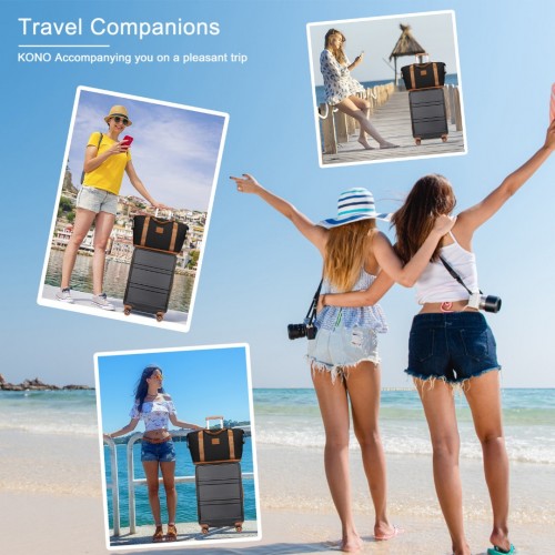 K1871-1L+EA2212 – Kono ABS 4 Wheel Suitcase Set With Vanity Case And Weekend Bag And Toiletry Bag – Black And Brown
