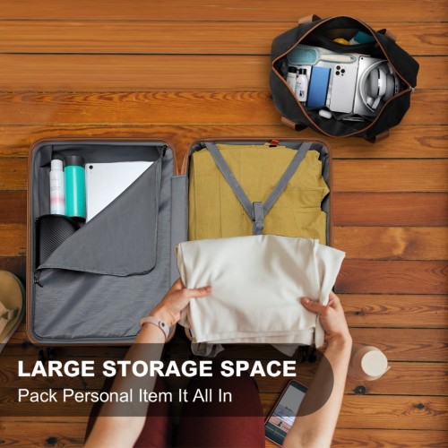 Navigate travel hubs with ease using our suitcase’s 360° swivel wheels for balanced maneuvering and a retractable telescopic handle adjustable to various heights. Ensure your belongings’ security with the TSA-approved combination lock, while dual conventional handles and side feet offer versatile carrying options. Inside, find your items neatly fastened by nylon straps with a buckle on one side and securely zipped on the other.
