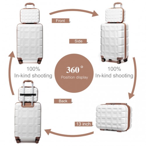 K2292L – Kono 13/20 Inch Lightweight Hard Shell ABS Cabin Suitcase With TSA Lock And Vanity Case – White