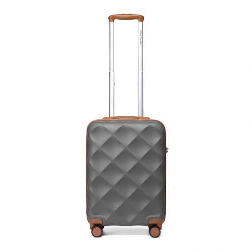 K2395L – British Traveller 20 Inch Ultralight ABS And Polycarbonate Bumpy Diamond Suitcase With TSA Lock – Grey And Brown