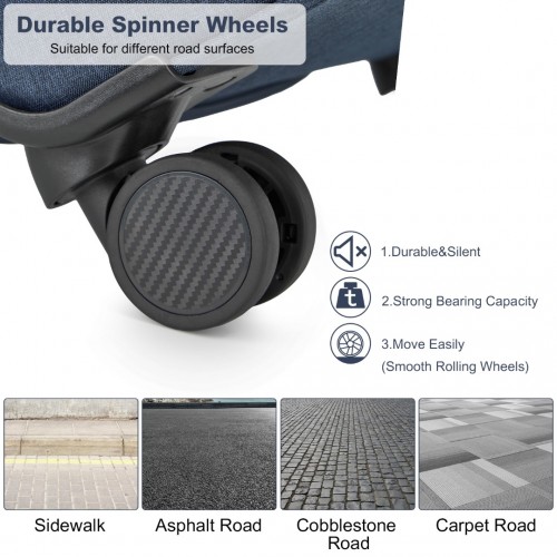 The sturdy aluminum telescopic handle and convenient top handle allow you to easily lift and navigate your suitcase.