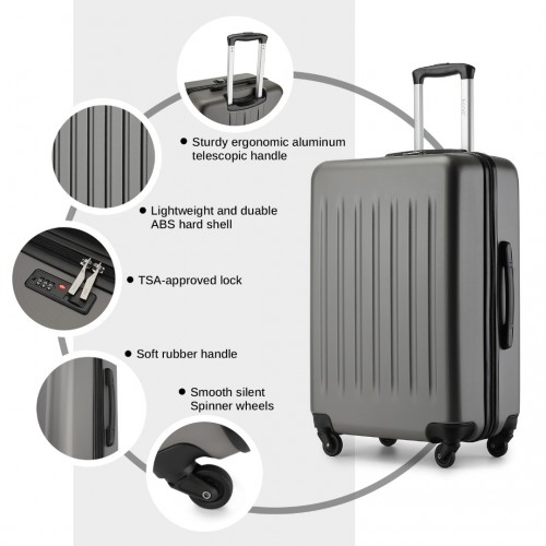 KSK2477 – Kono Premium 3-Piece Vertical Textured Hard-Shell ABS Luggage Set with 3-Digit Lock & TPE Silent Wheels – Grey
