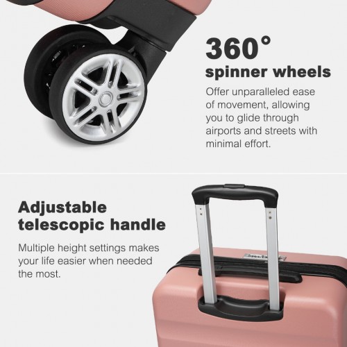 The suitcase is equipped with a fully adjustable telescopic handle, TSA-approved customs lock, and smooth, silent TPE airplane wheels for effortless mobility.