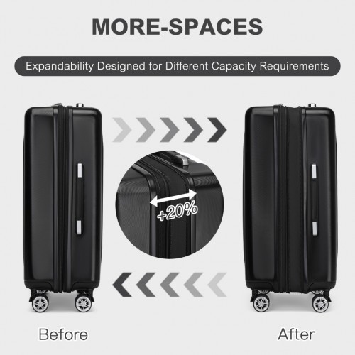 The 24″ and 28″ suitcases feature an expandable layer that, when unzipped, adds up to 2cm to the width, enhancing storage capacity.