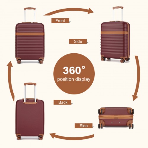 KSK2484 – Kono 20 Inch Stylish Lightweight Hard Shell ABS+PC Cabin Carry-On Suitcase with TSA Lock for Enhanced Security – Burgundy and Brown