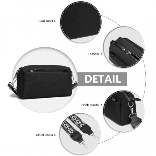 LH2410 – Miss Lulu Ethnic Jacquard Strap Water-Resistant Crossbody Bag – Black