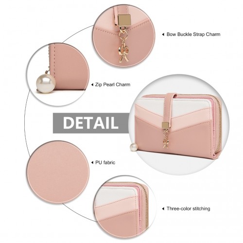 The contents are accessed via either a zip or a popper. The popper clasp features a sweet bow accessory, and the zip features a pearl effect bead.