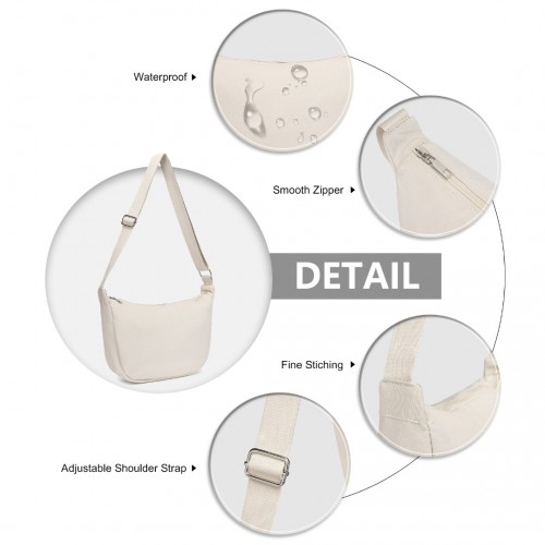S2415 – Portable Water-resistant Nylon Crossbody Bag With Comfortable Cotton Strap – Beige